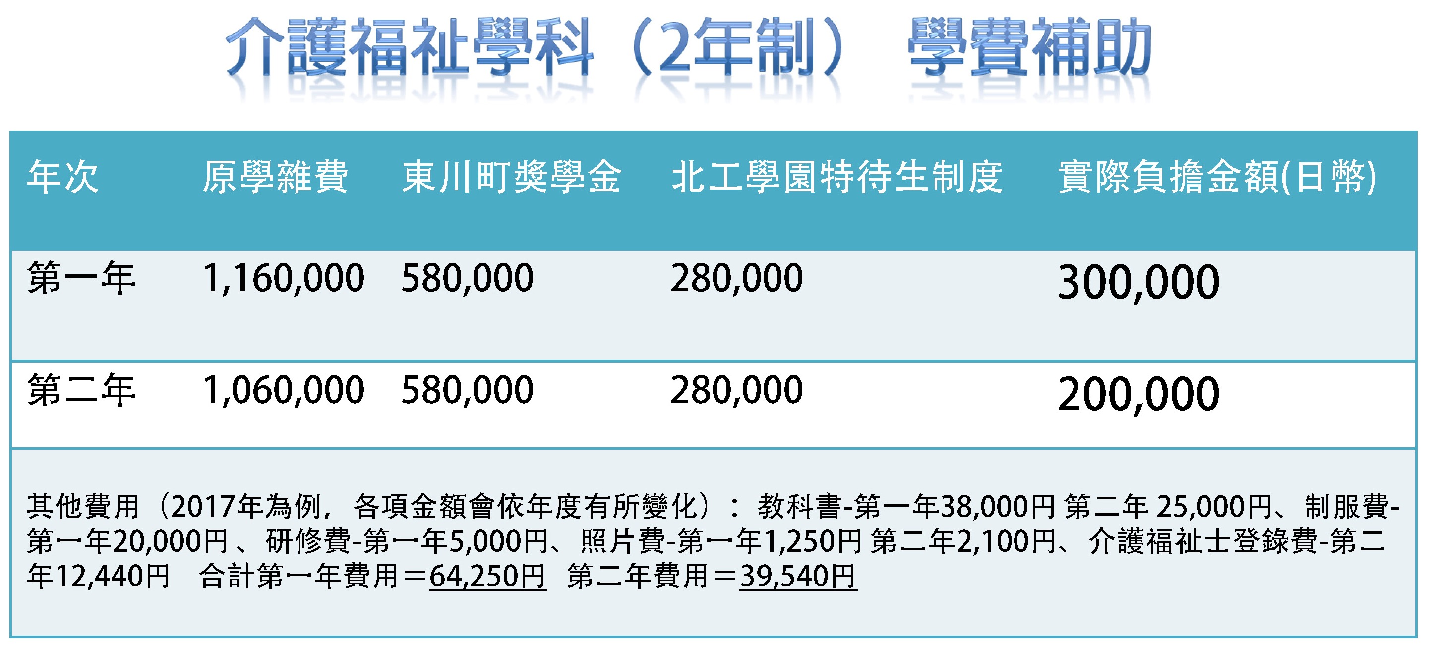 介護福祉學科 學費補助制度